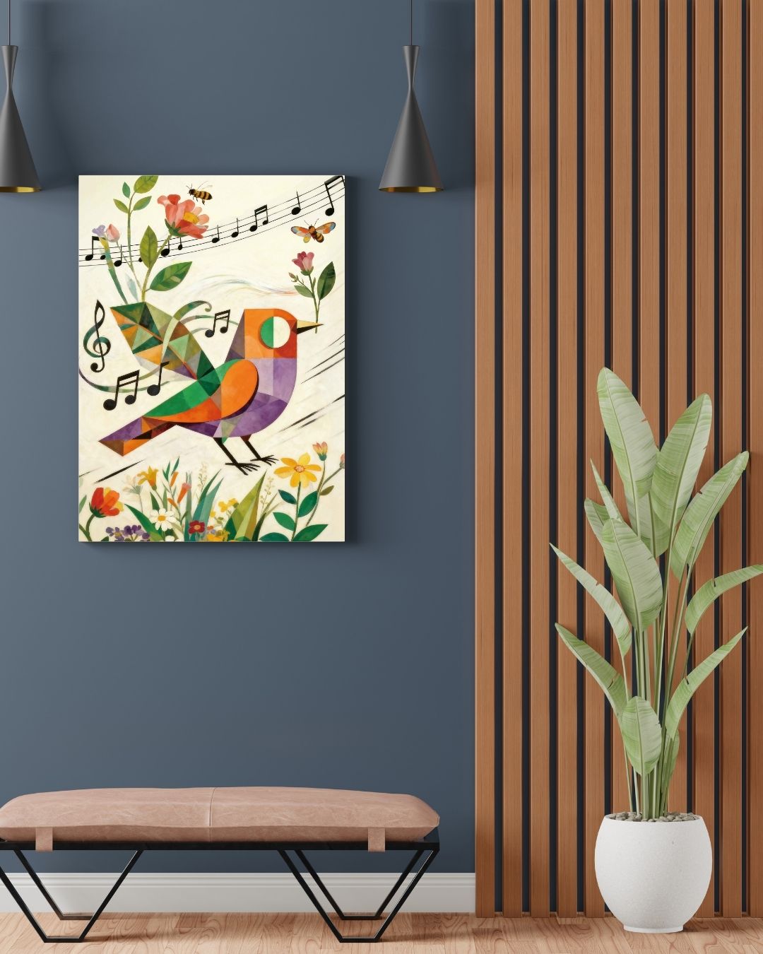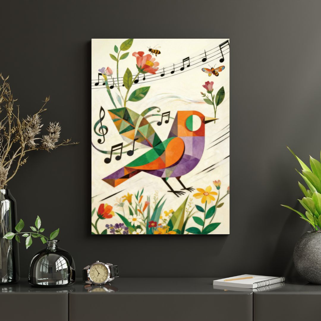 Framed Canvas Art Prints – Cubist style Original Work: Dance Among Blossoms— Bird