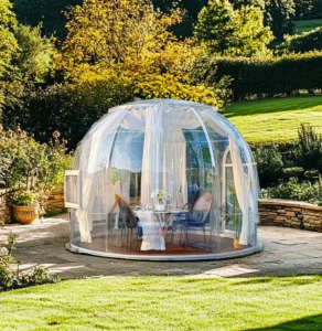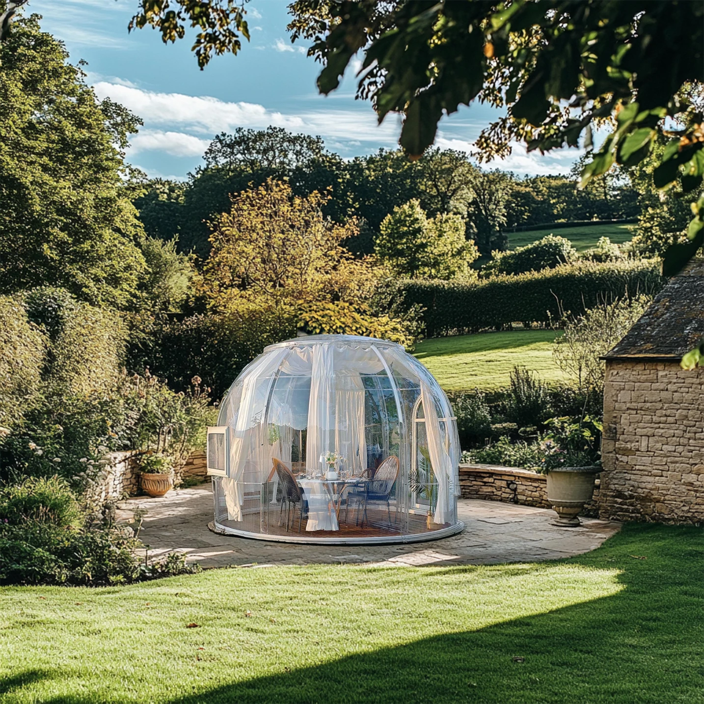 Transform your outdoor space with our high-quality PVC Glass Dome, designed for year-round enjoyment in any setting. Made to order and expertly installed by our team, this elegant and durable structure provides a striking feature for gardens, patios, and more.