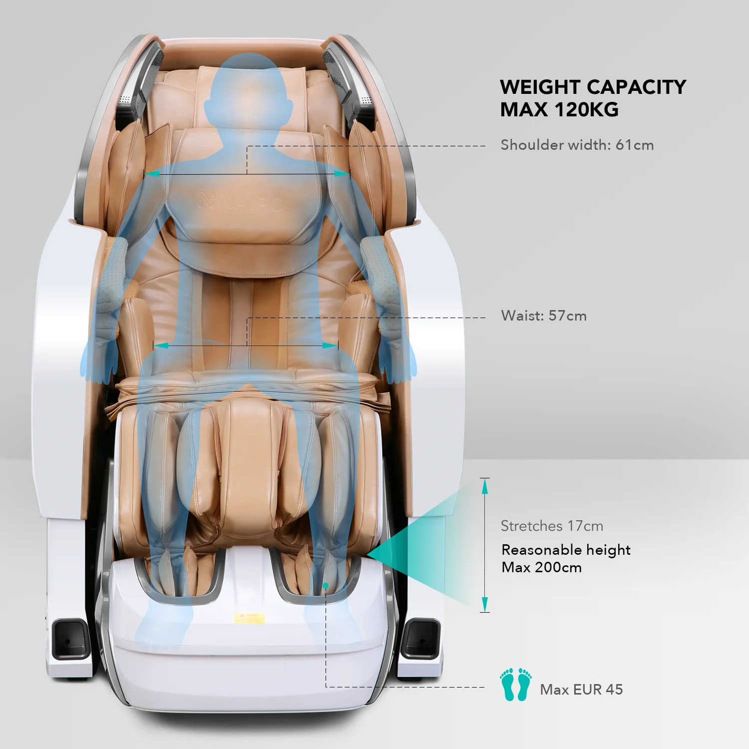 6 Automatic programmes Professionally designed automatic massage programmes: Sports Recovery, Body Stretching, Rest&Sleep, Relieve Stress, Neck&Shoulder, Waist&Spine.