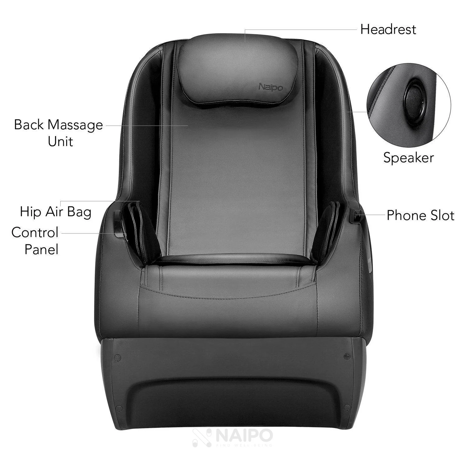NAIPO Serenity Comfort Shiatsu massage chair, space-saving design