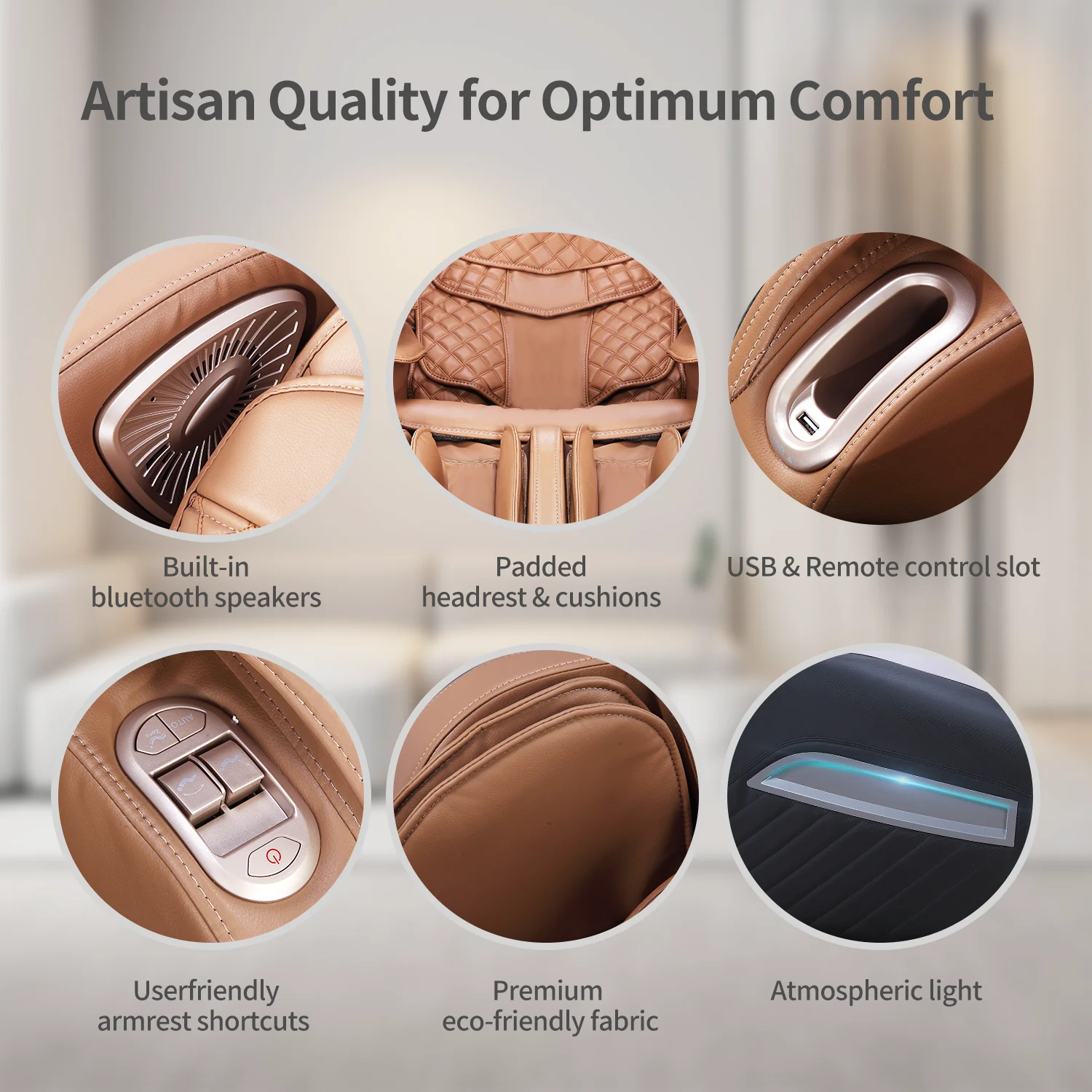 With the ergonomic capsule-shaped design, bionic massage techniques (Shiatsu, kneading, knocking, beating, patting, stretching, air pressure massage, waist heating function), and various massage programs, this massage chair can provide a relaxing and comfortable massage experience for the whole body.